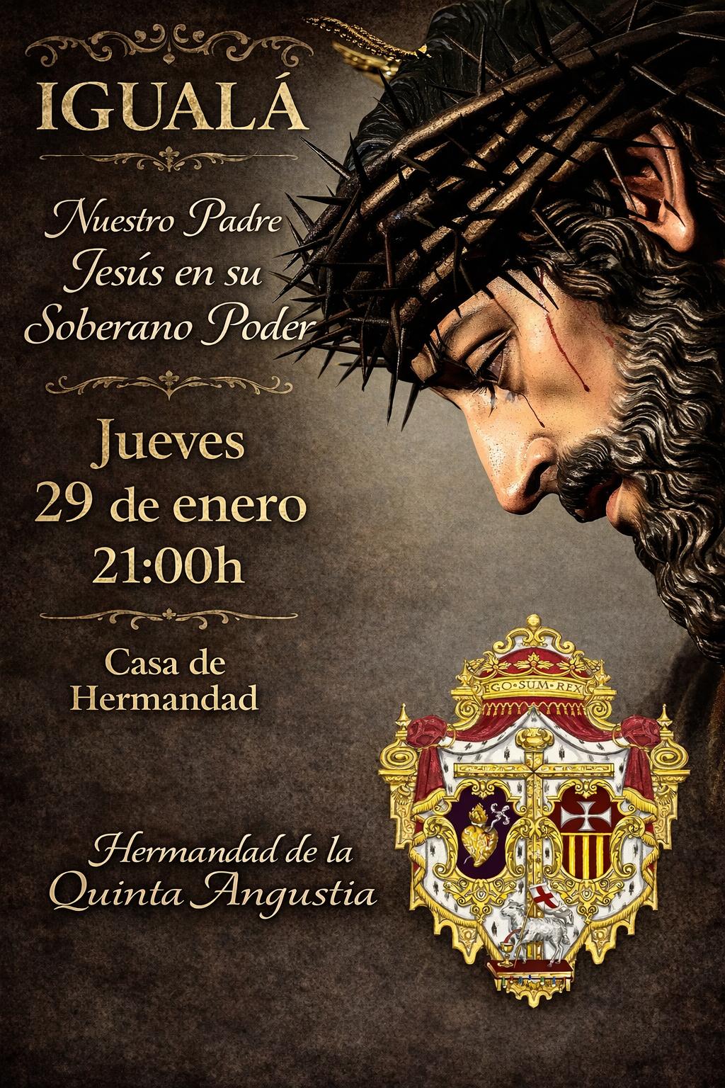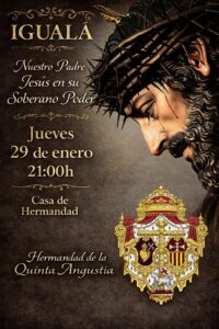 El próximo día 29 de enero de 2026, tendrá lugar en la Casa de Hermandad de la Plaza Gonzalo de Ayora N2, la Igualá de la cuadrilla de Nuestro Padre Jesús en su Soberano Poder, para el Vía Crucis del próximo Miércoles de Pasión.