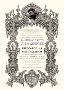 El próximo viernes día 27 de febrero, segundo viernes de cuaresma tendrá lugar el tradicional Pregón de las Siete Palabras en honor de nuestro Cotitular el Santísimo Cristo de la Merced