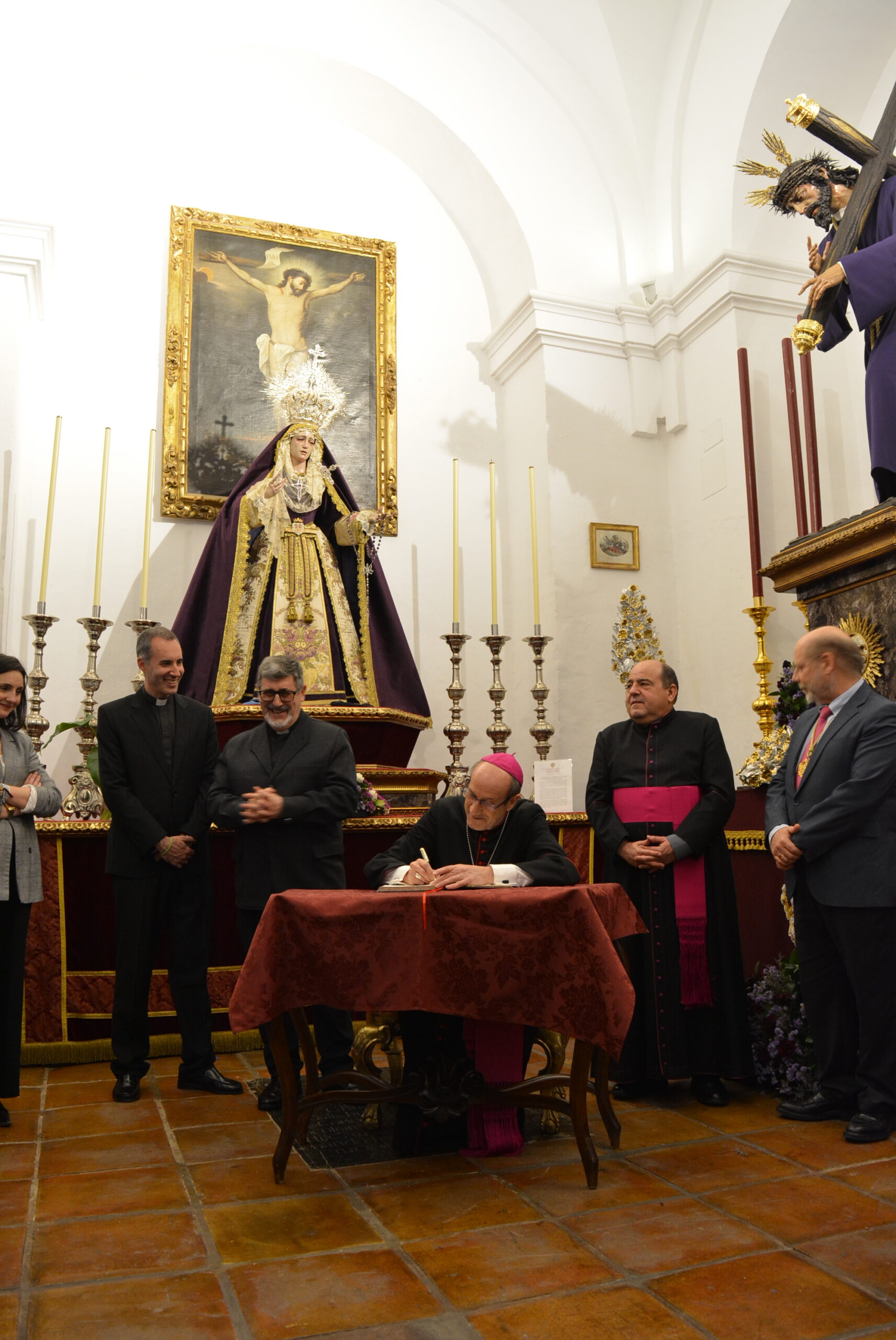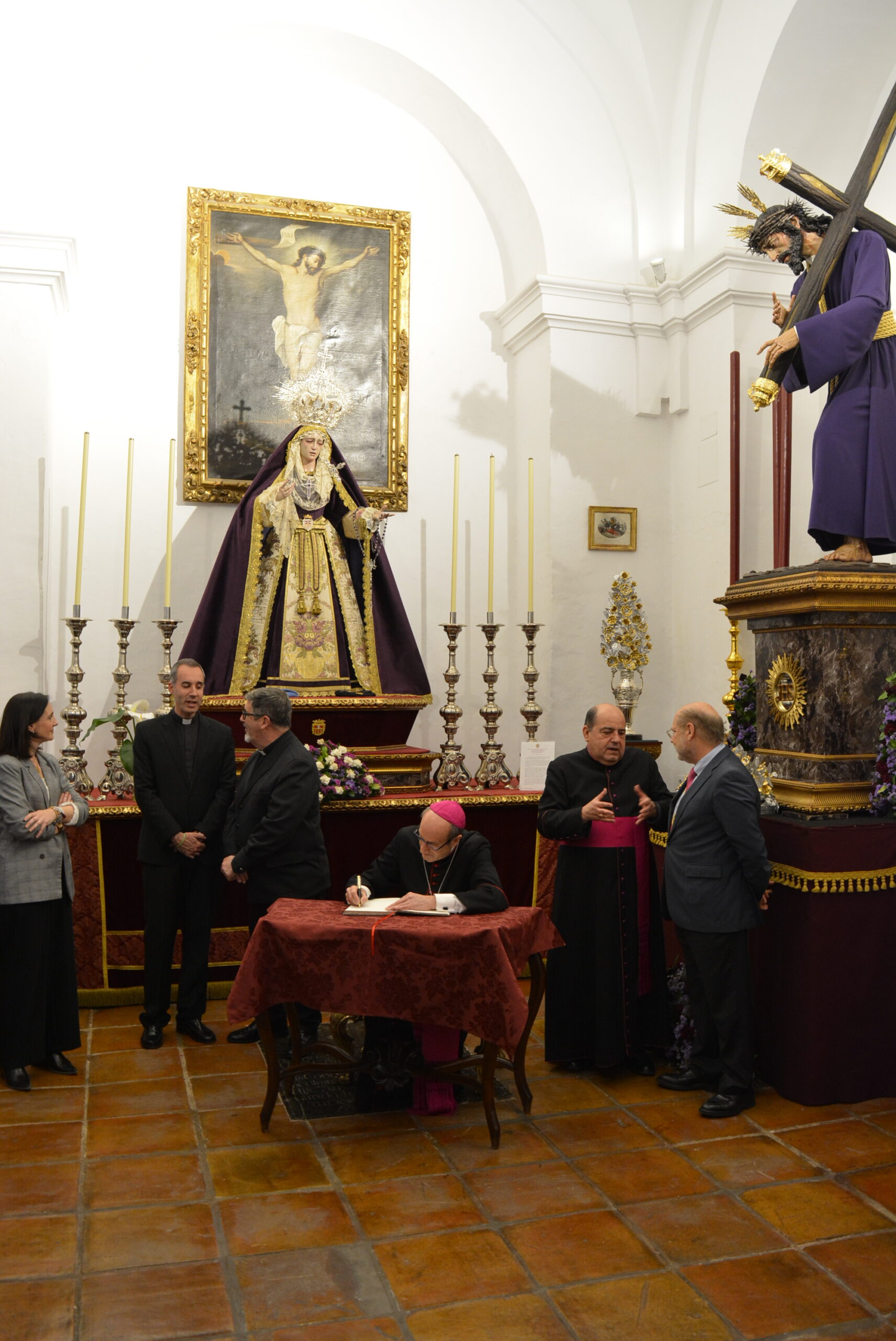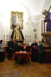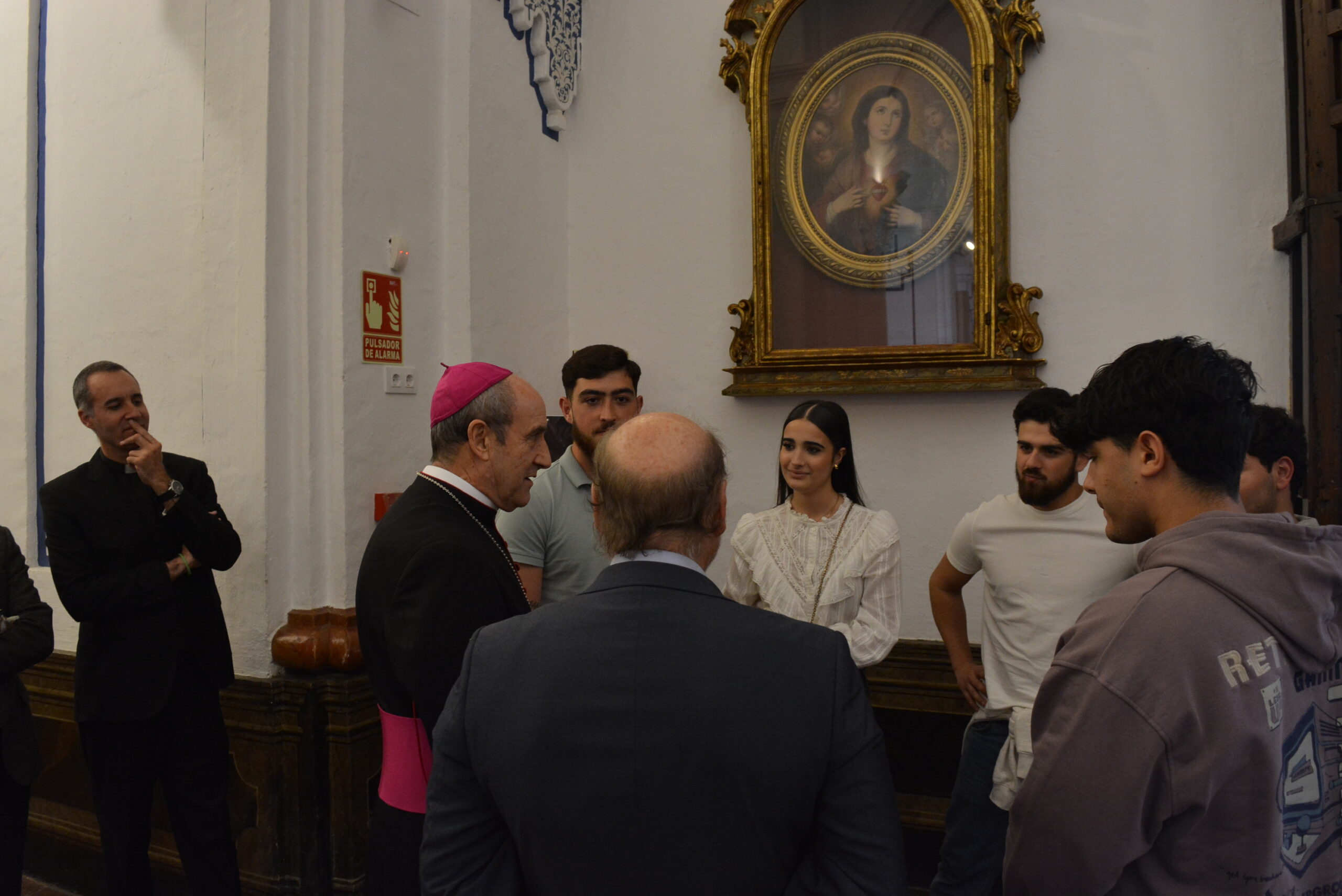 En la tarde de hoy nos visito el Señor Obispo junto al Delegado Diocesano de Hermandades y Cofradías, así como el consiliario de la Agrupación de Hermandades y Cofradías en el marco de las visitas que el Señor Obispo esta realizando a todas las hermandades antes de sus respectivas salidas, igualmente nos acompaño en esta visita la vicepresidenta de la Diputación de Córdoba Dña. Marta Siles. Es para la Hermandad un inmenso honor y respaldo esta visita de nuestro pastor, el cual nos animo a continuar con la evangelización y el fomento de la piedad popular.
