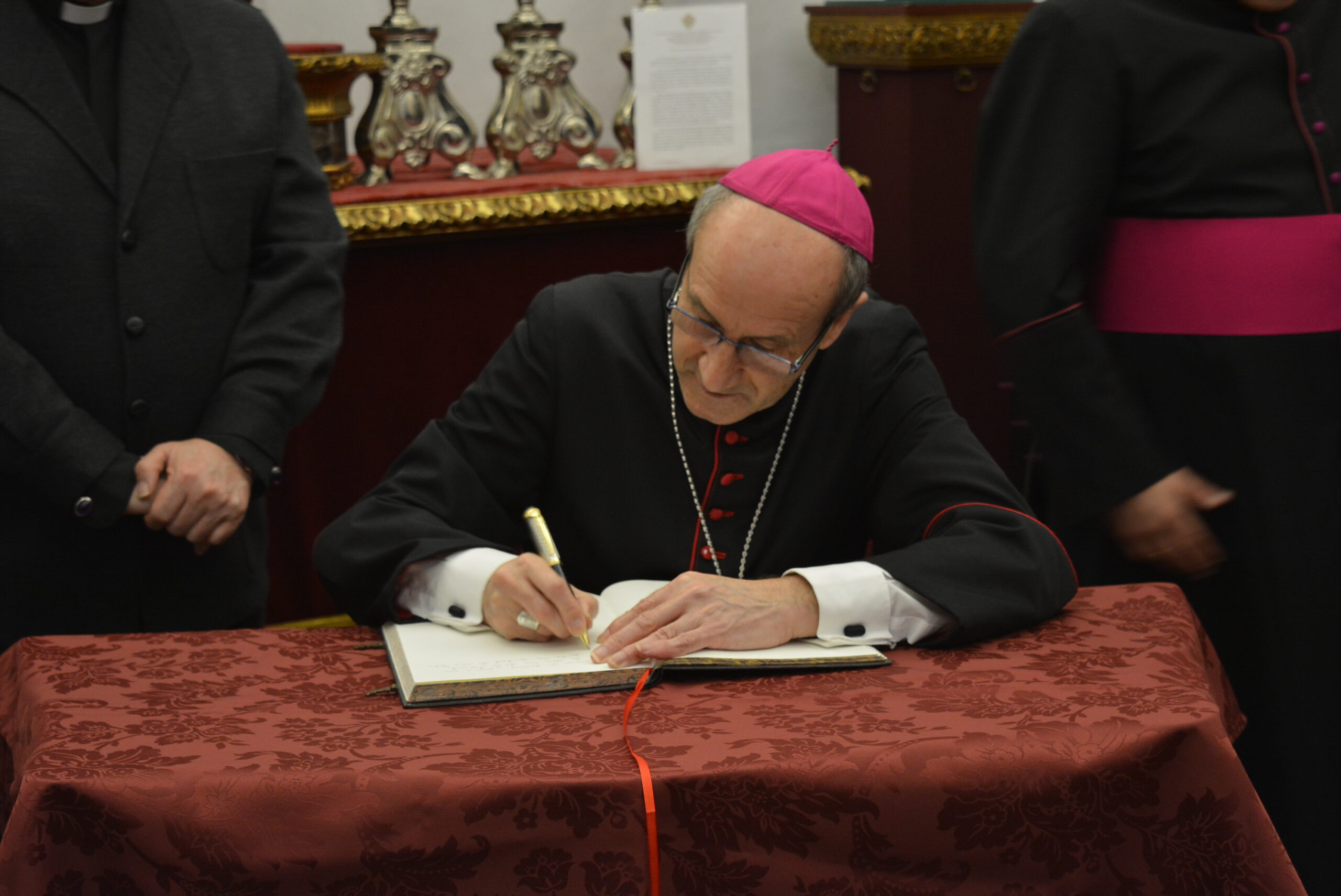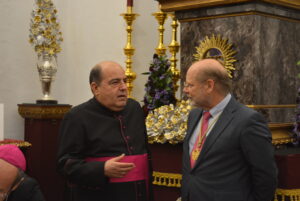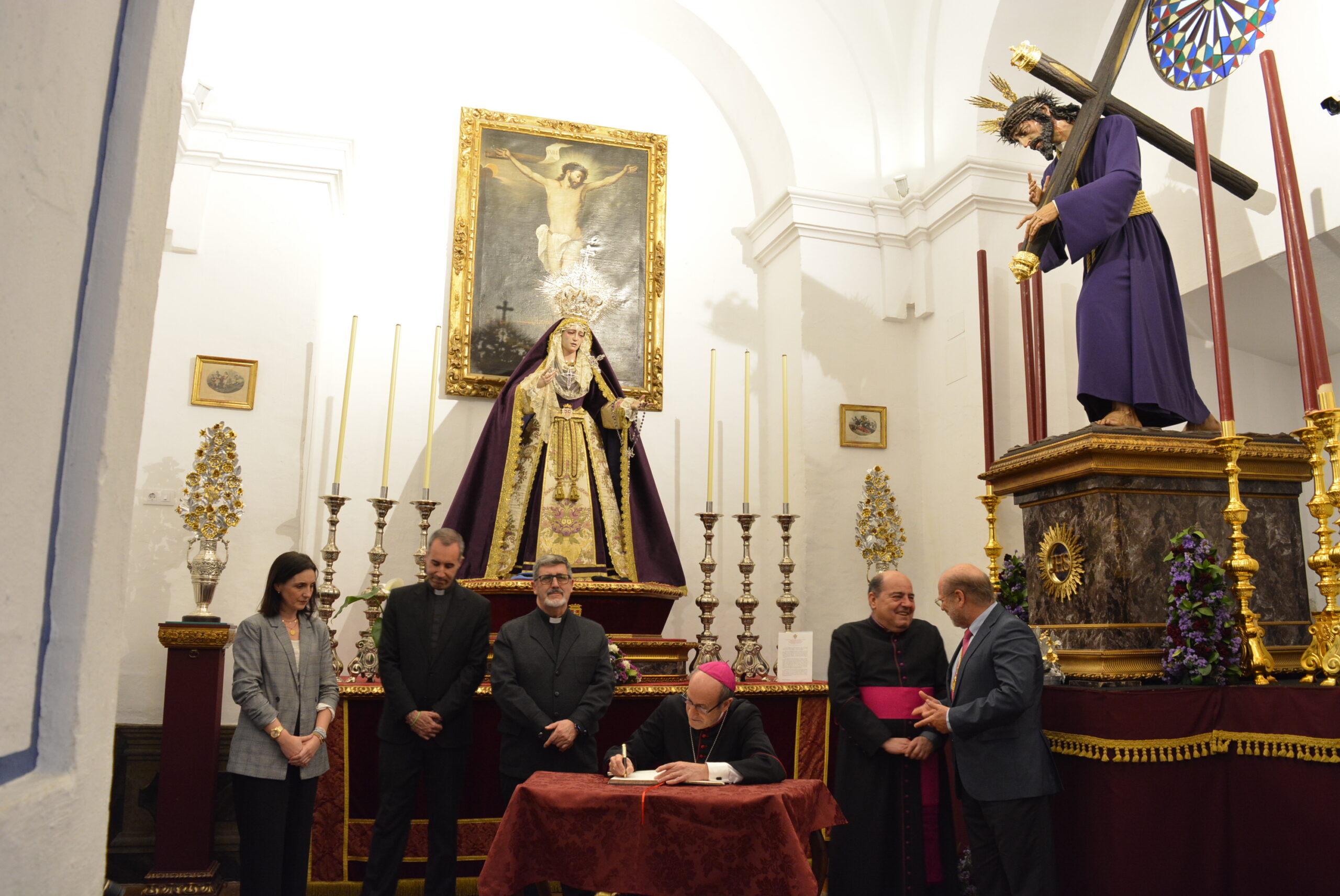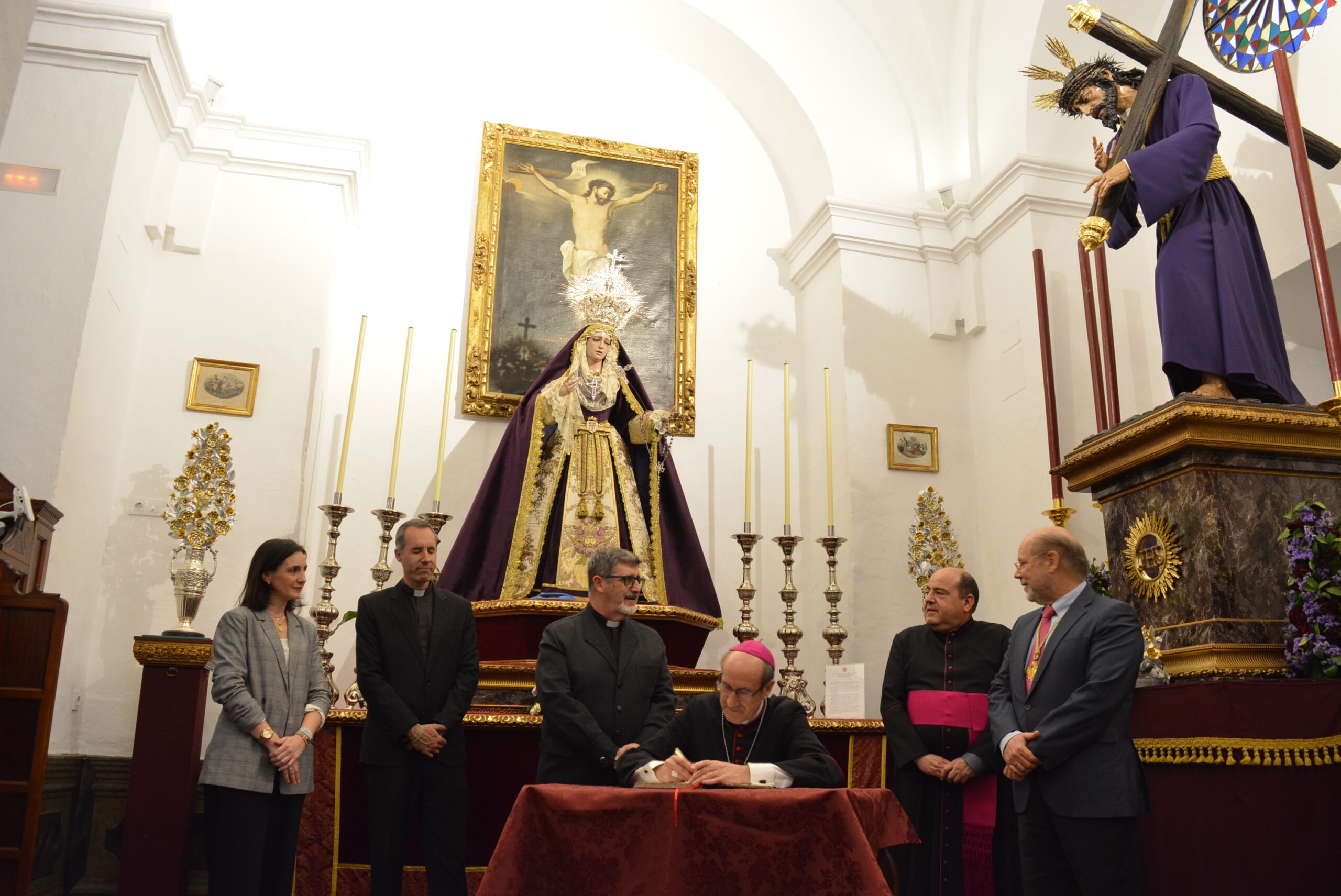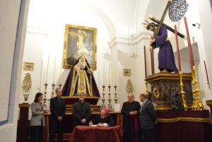 En la tarde de hoy nos visito el Señor Obispo junto al Delegado Diocesano de Hermandades y Cofradías, así como el consiliario de la Agrupación de Hermandades y Cofradías en el marco de las visitas que el Señor Obispo esta realizando a todas las hermandades antes de sus respectivas salidas, igualmente nos acompaño en esta visita la vicepresidenta de la Diputación de Córdoba Dña. Marta Siles. Es para la Hermandad un inmenso honor y respaldo esta visita de nuestro pastor, el cual nos animo a continuar con la evangelización y el fomento de la piedad popular.