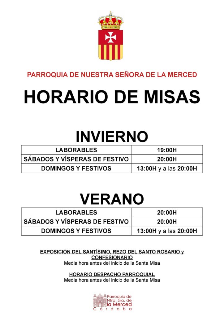 La Iglesia de la Merced tiene dignidad de parroquia desde que Monseñor José María Cirarda Lachiondo, Obispo de Córdoba, la elevó a esta dignidad bajo su pontificado en la Diócesis de Córdoba. Históricamente fue sede de diferentes Hermandades; hoy la única que tiene su sede es la Hermandad de la Quinta Angustia. El párroco es el Rvdo. Sr. D. Miguel Varona Villar, desde el año 2022.